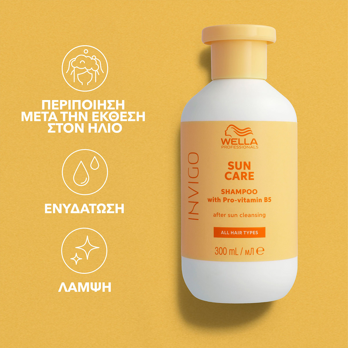 Το σαμπουάν Wella Profesionnals Invigo After Sun Cleansing Shampoo 300ml, καθαρίζει απαλά τα μαλλιά μετά την έκθεσή τους στην άμμο και στο θαλασσινό αλάτι.